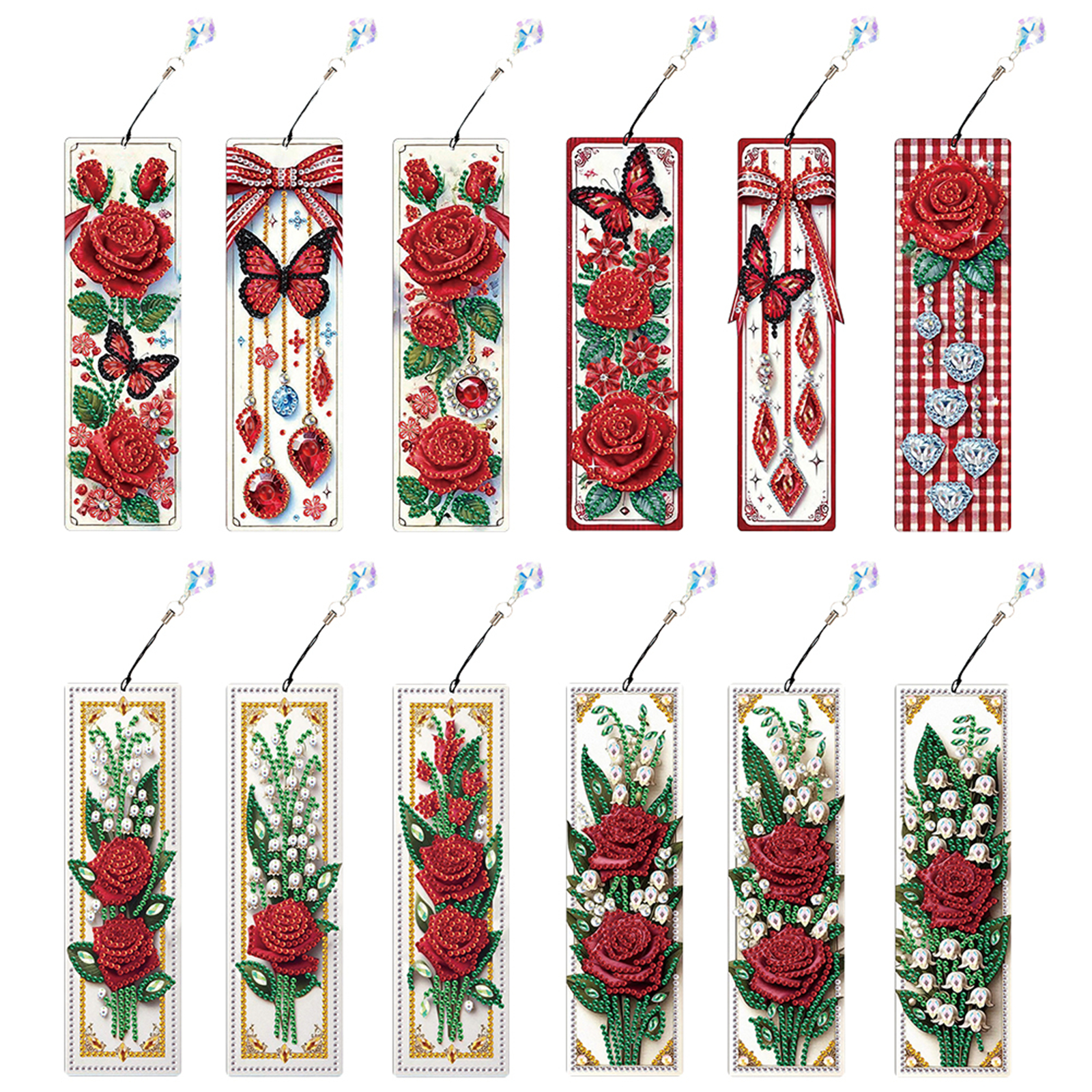 12Pcs Rose Flowers DIY Diamond Painting Bookmark for Adults Book Lovers Gifts