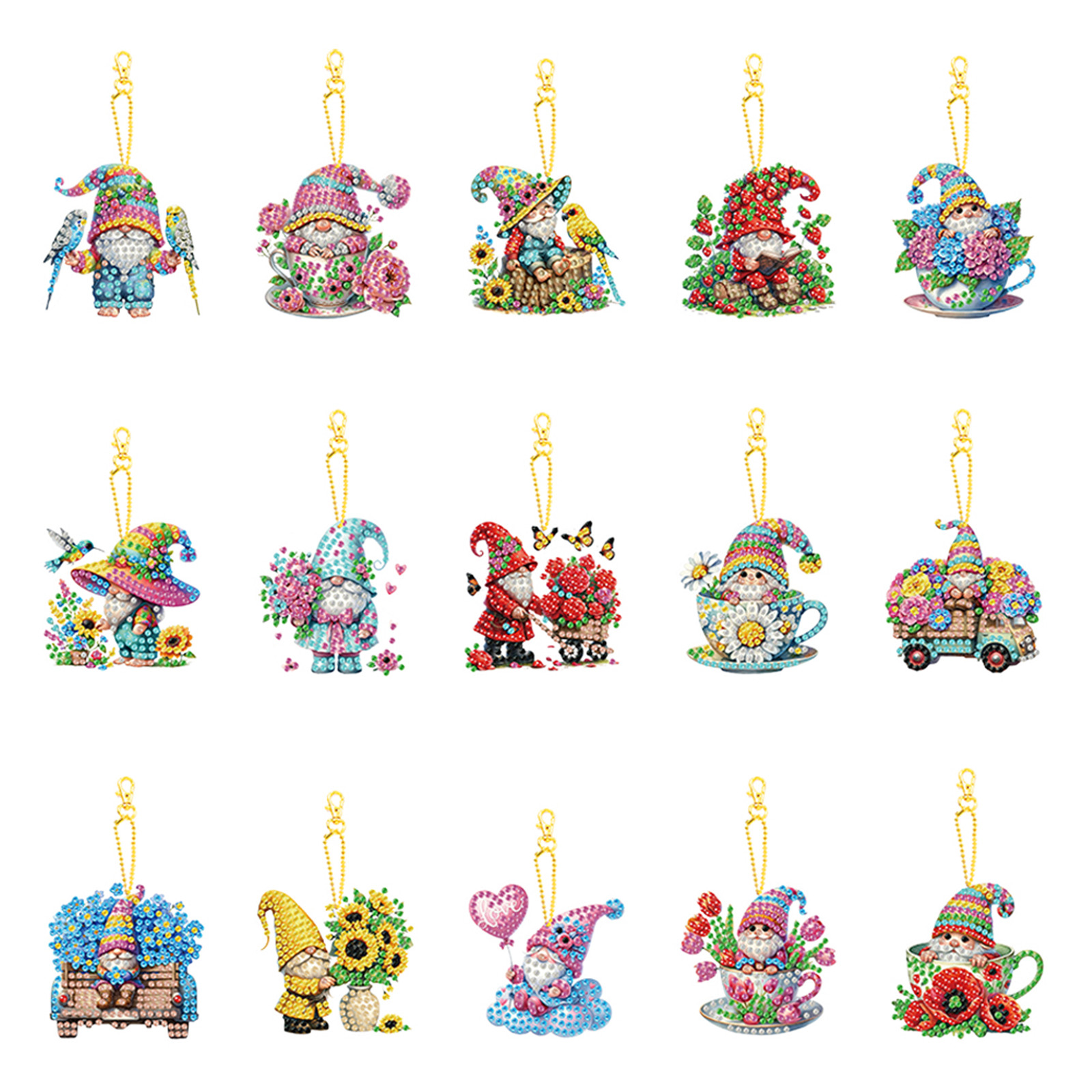 15Pcs Gnome DIY Double Sided Diamond Painting Keychain Kits for Beginners
