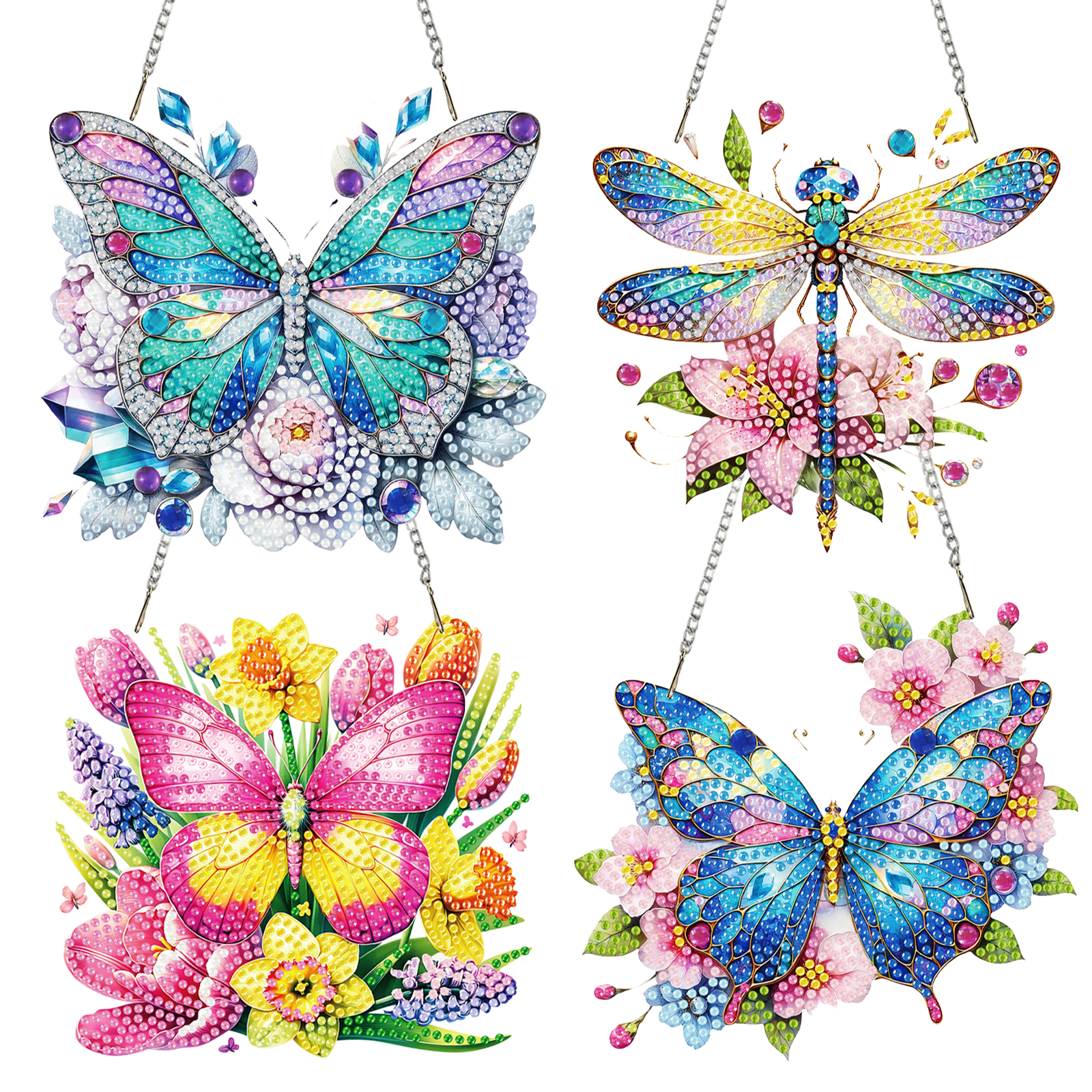 4Pcs Butterfly DIY Diamond Art Pendant Acrylic Hanging Charm Home Decor
