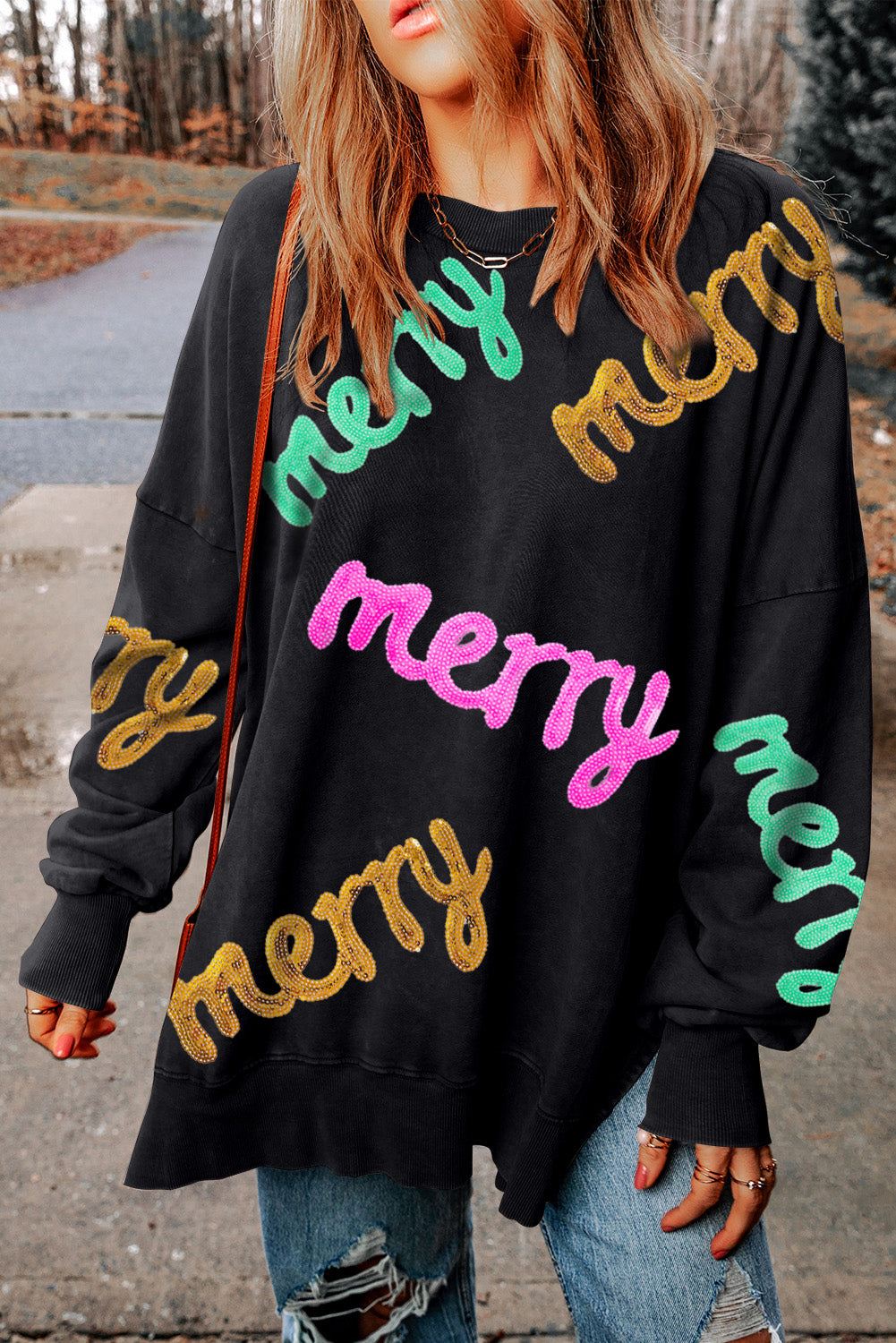 Black Sequins Merry Graphic Christmas Sweatshirt