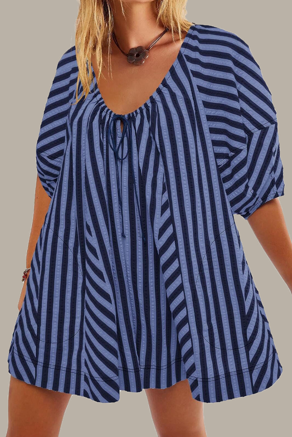 Blue Stripe Loose Deep V Wide Leg Romper