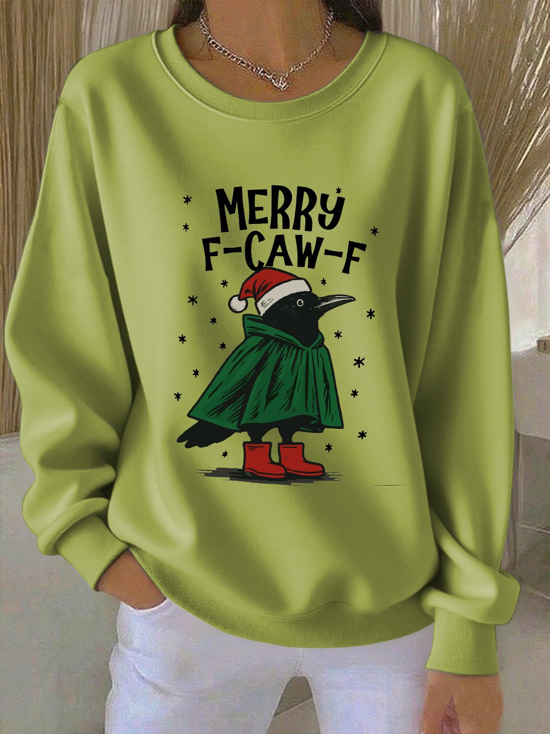 Cotton Women's Casual Christmas Fun Crow Print Sweatshirt