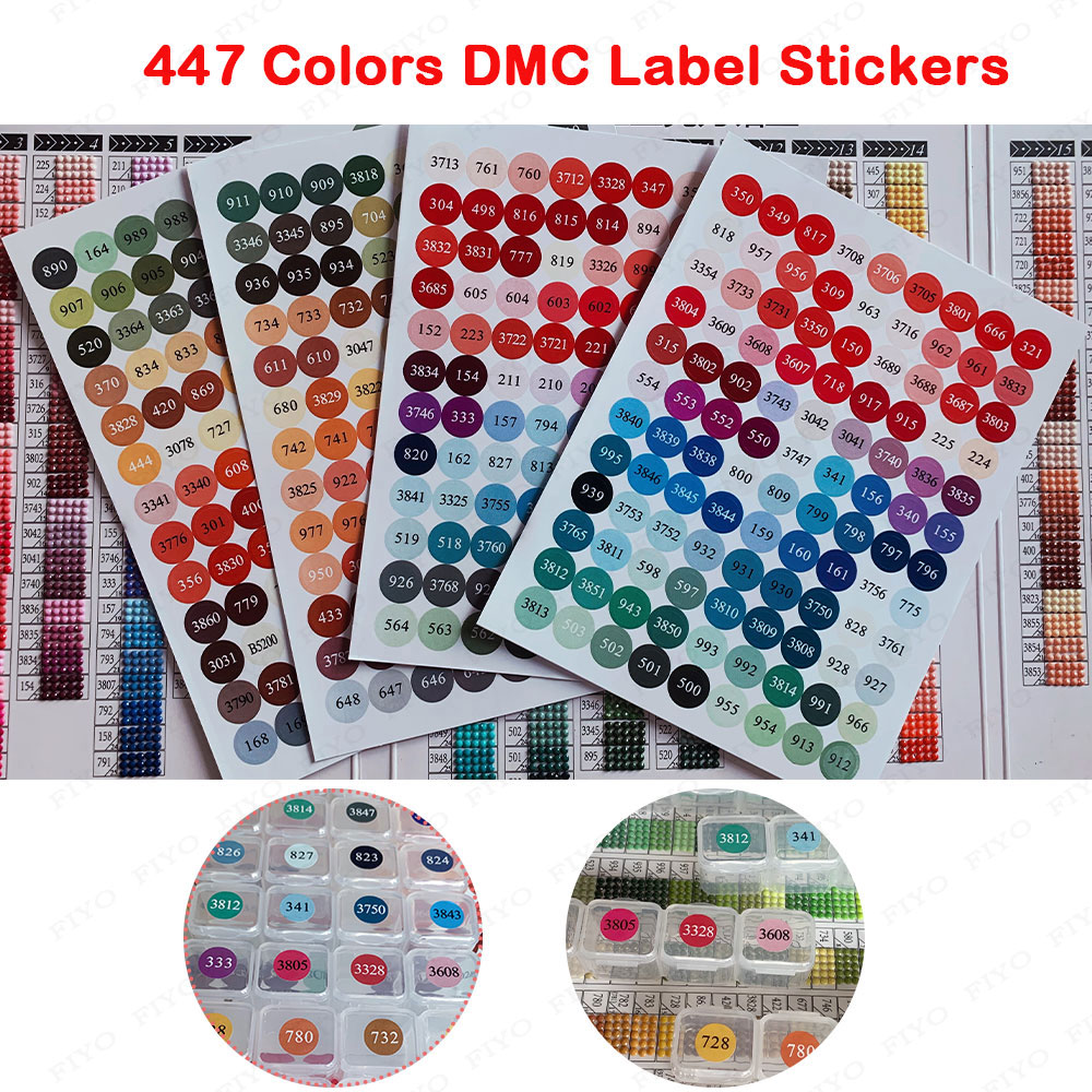 DMC 447 Colors Number Label Stickers for Diamond Painting Storage Box Bottle (Colorful)