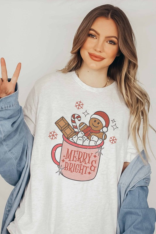 MERRY & BRIGHT CHRISTMAS DRINK GRAPHIC TEE