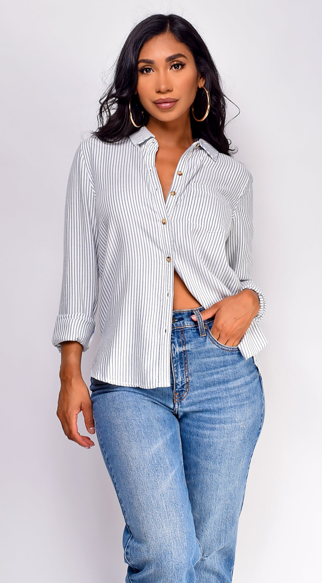 Nawal Pinstripe Button Down Shirt - Blue