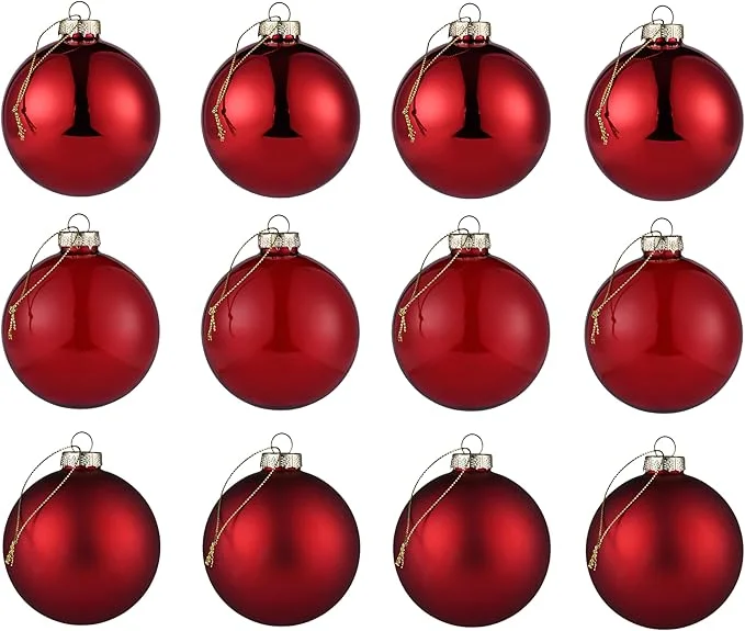 Red Glass Christmas Ball Ornaments, 3.15’’ Burgundy Ornament for Christmas Tree Set of 9 with 3 Different Finishes, Vintage Xmas Balls for Home Decor, Thanksgiving Party Gift
