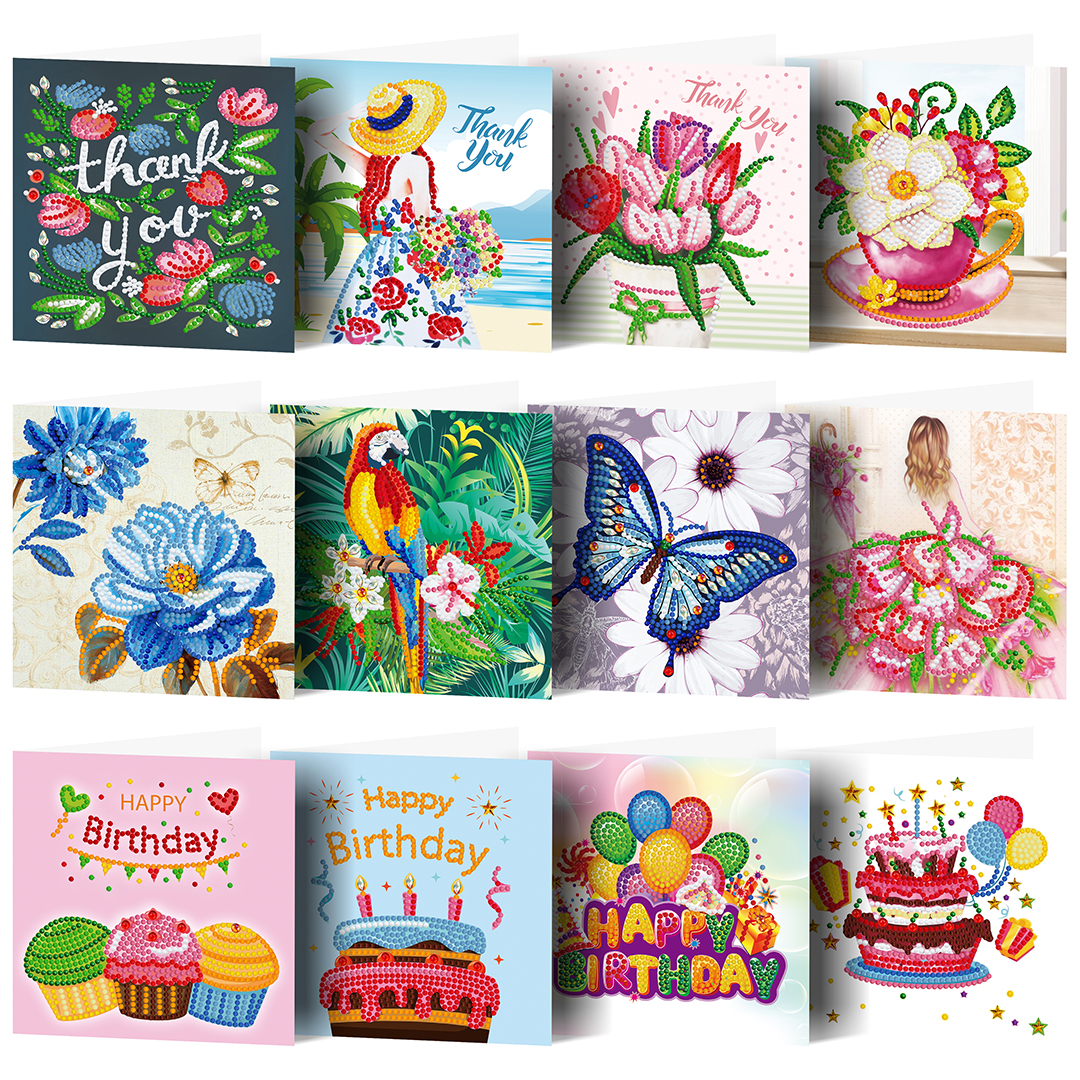 12pcs DIY Diamond Painting Greeting Cards Birthday Thanks Embroidery Postcard
