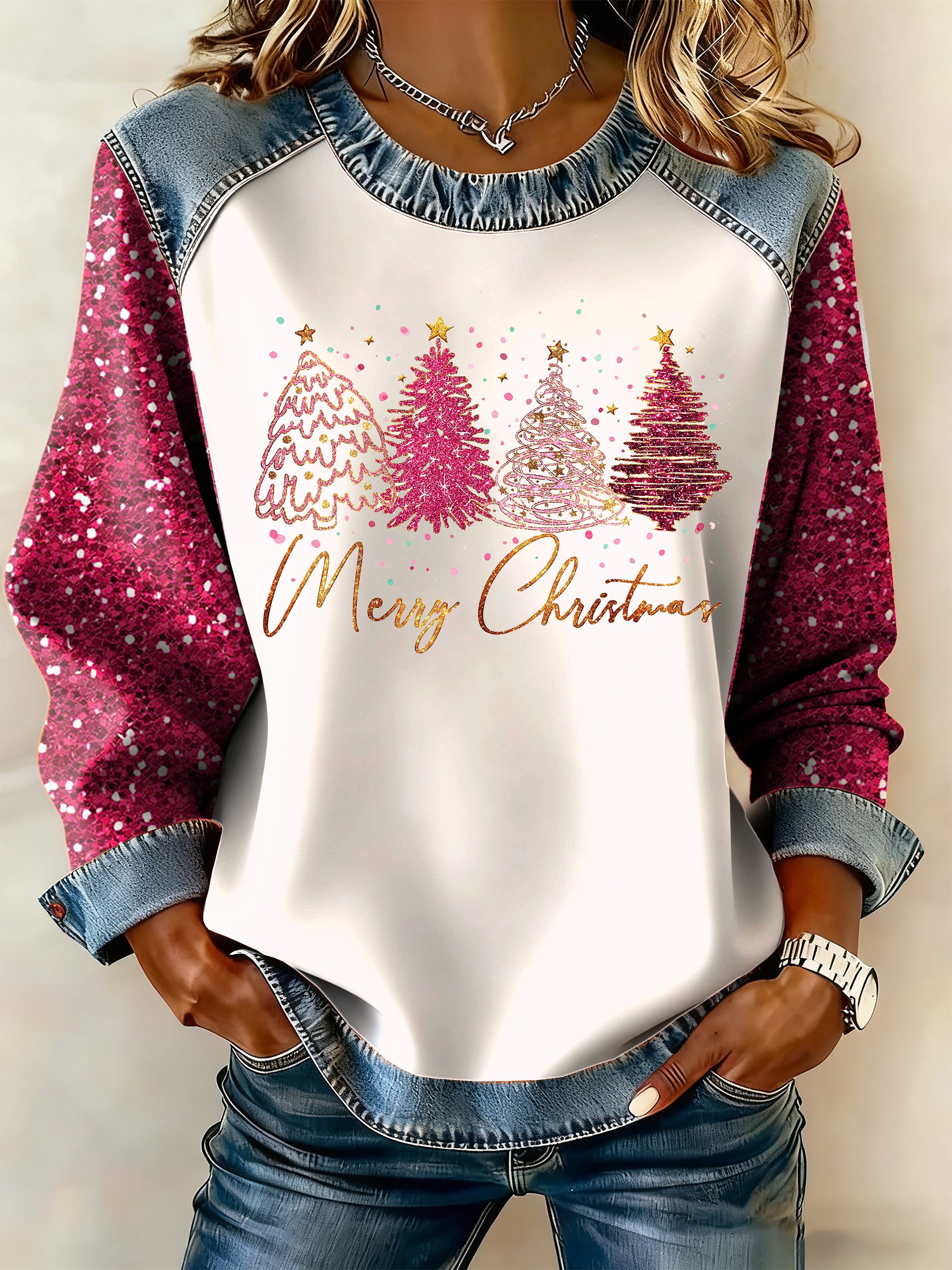 Women's Autumn Retro Christmas Tree Print Casual Sweatshirt