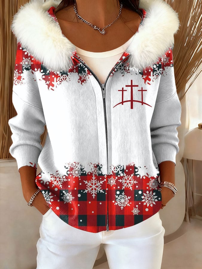 Women's Casual Christmas Faith Zipper Jacket