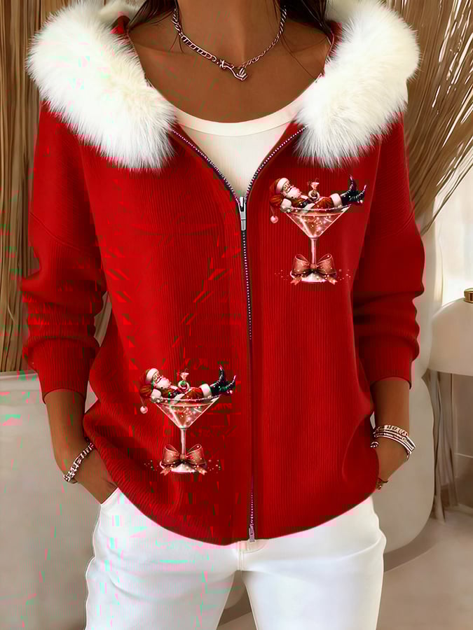 Women's Casual Christmas Margaret Santa Claus Fur Collar Zip-Up Jacket