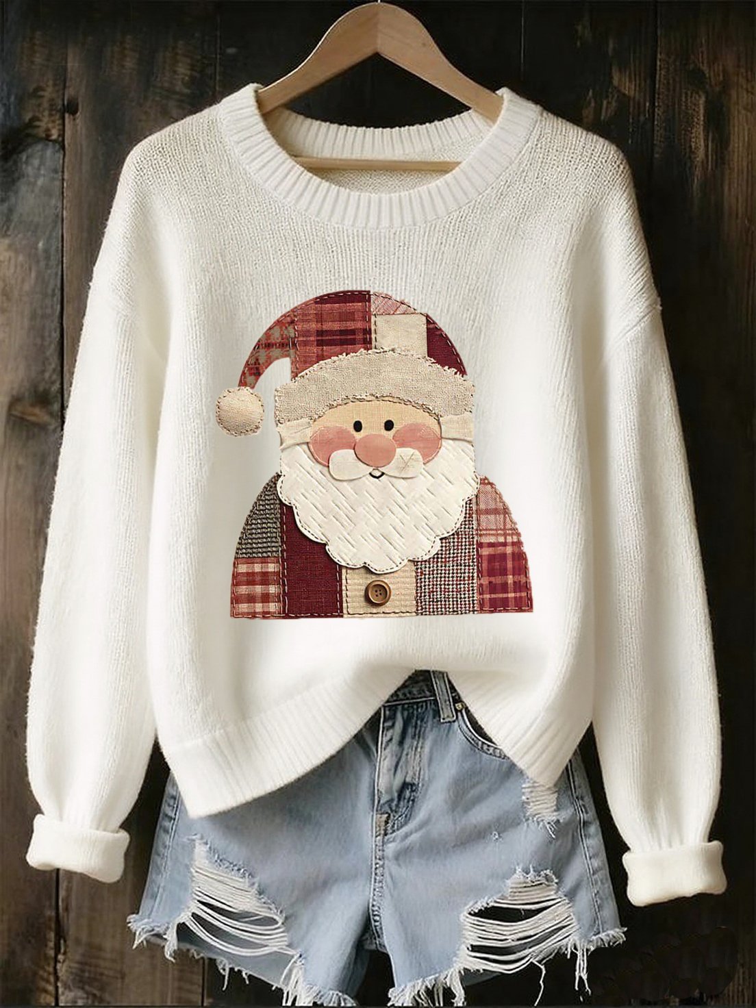 Women's Casual Knitted Santa Claus Print Round Neck Sweater