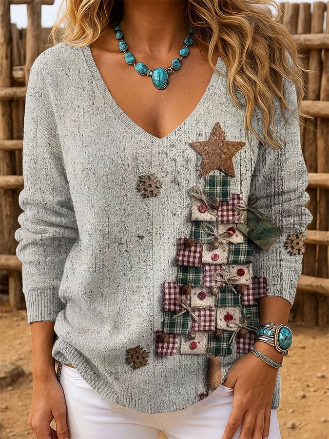 Women's Casual Printed Knitted Long Sleeve Top