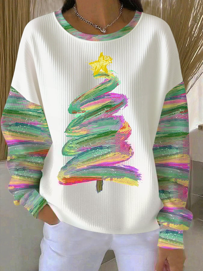 Women's Christmas Faith Oil Painting Style Printed Casual Sweatshirt