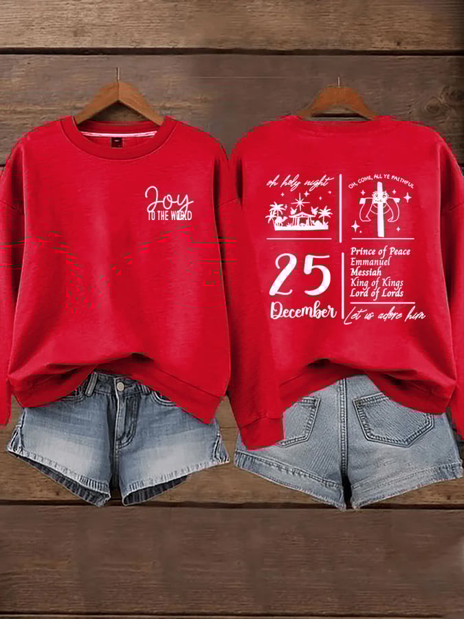 Women's Christmas Let Us Adore Him Faith Print Sweatshirt