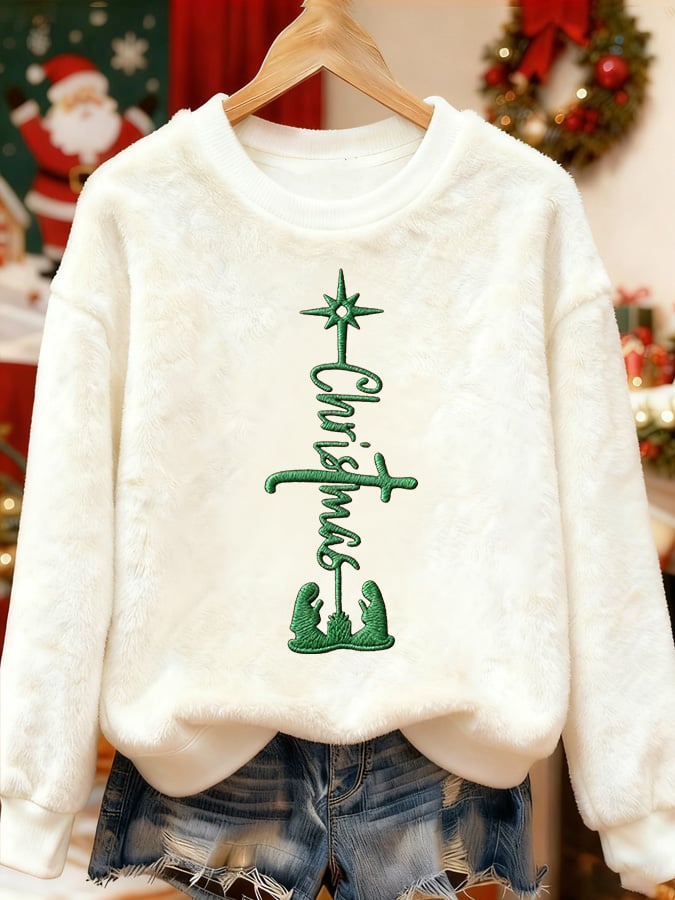 Women's Christmas Print Casual Flannel Long-Sleeve Sweatshirt