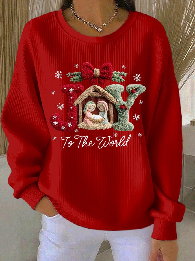 Women's Christmas Print Knitted Crew Neck Long Sleeve Top