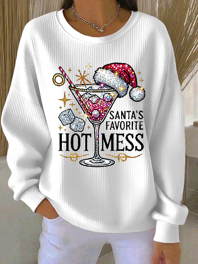 Women's Christmas Santa's Favorite Hot Mess Printed Casual Sweatshirt