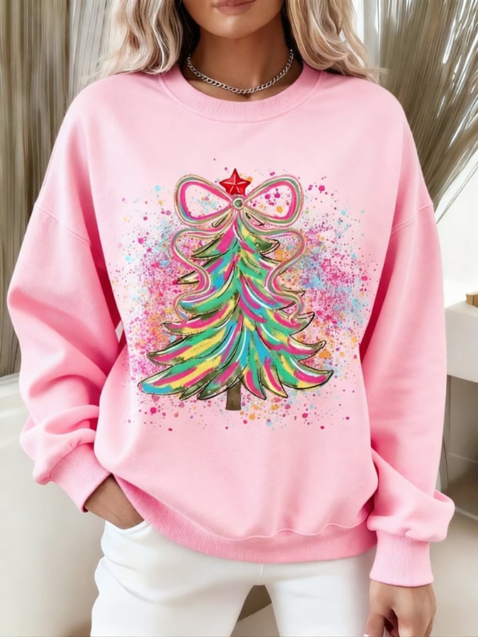 Women's Colorful Coquette Christmas Tree Print Sweatshirt