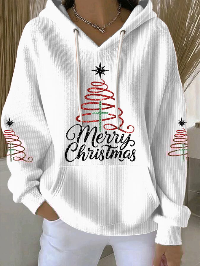 Women's Faith Cross Christmas Print Hooded Collar Sweatshirt