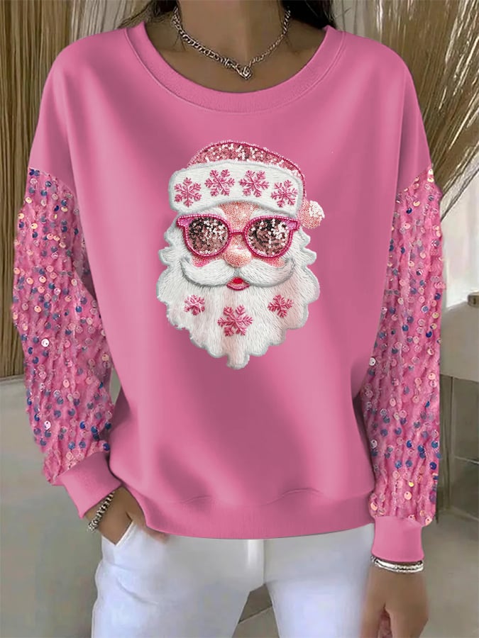 Women's Holly Jolly Sequin Sleeve Casual Sweatshirt