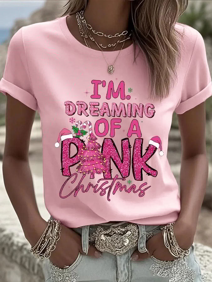 Women's I'm Dreaming Of A Pink Christmas Print Casual T-shirt