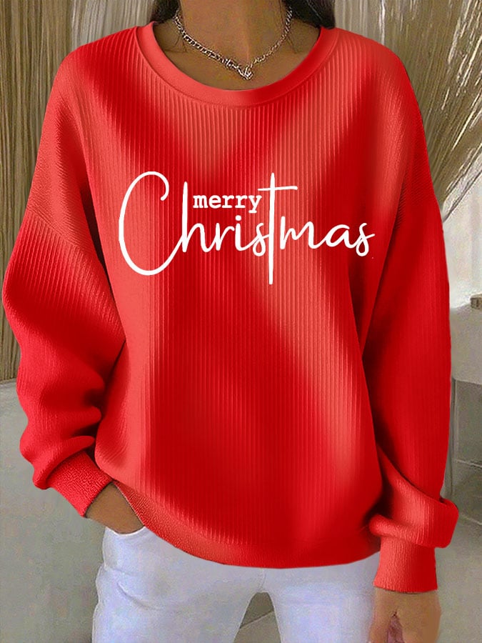 Women's Merry Christmas Print Round Neck Sweatshirt