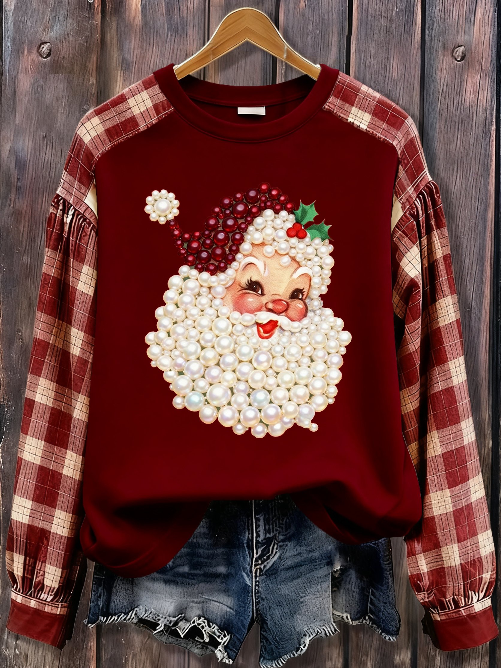 Women's Retro Christmas Plaid Patchwork Print Sweatshirt
