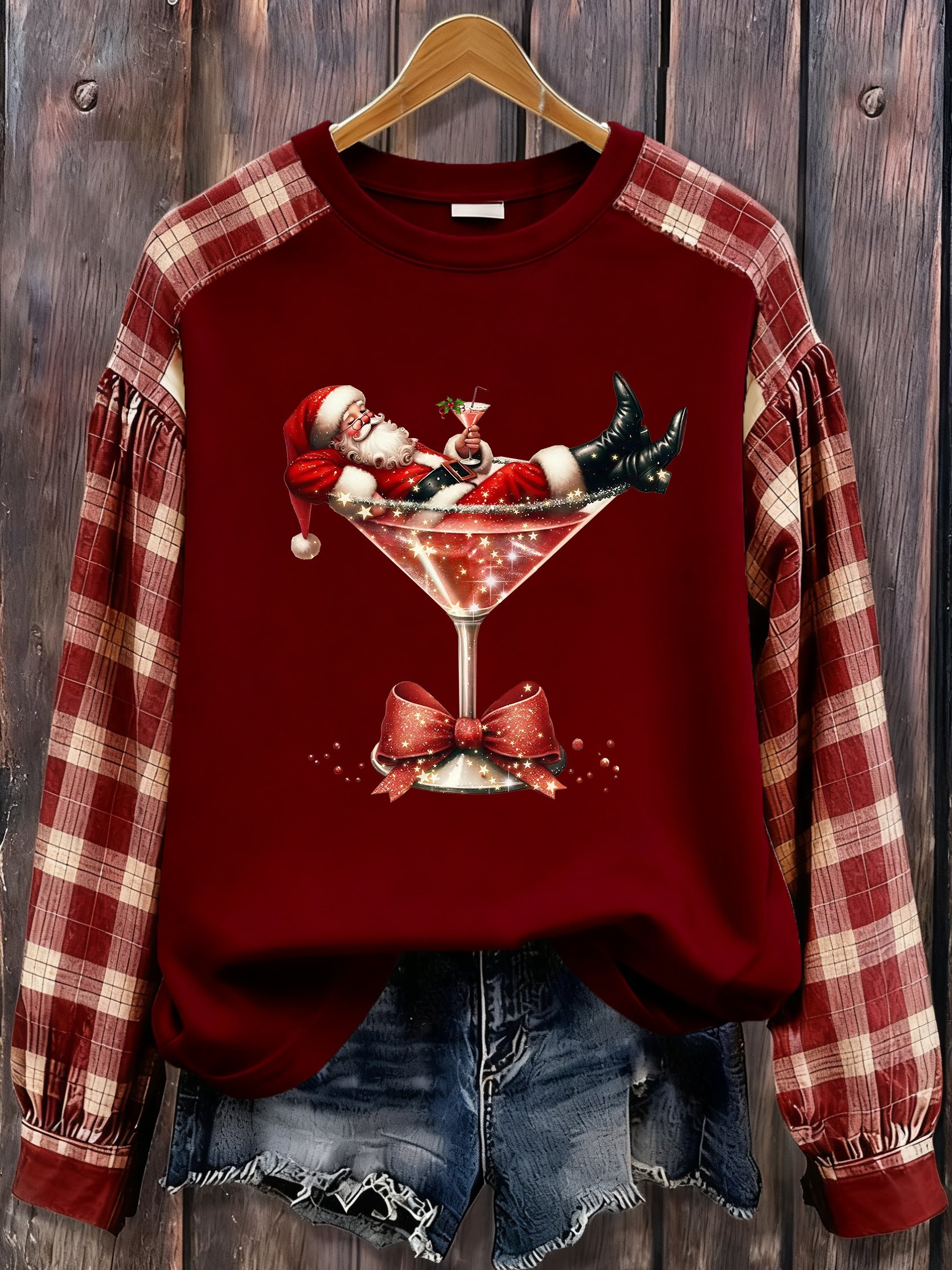Women's Retro Christmas Plaid Patchwork Print Sweatshirt