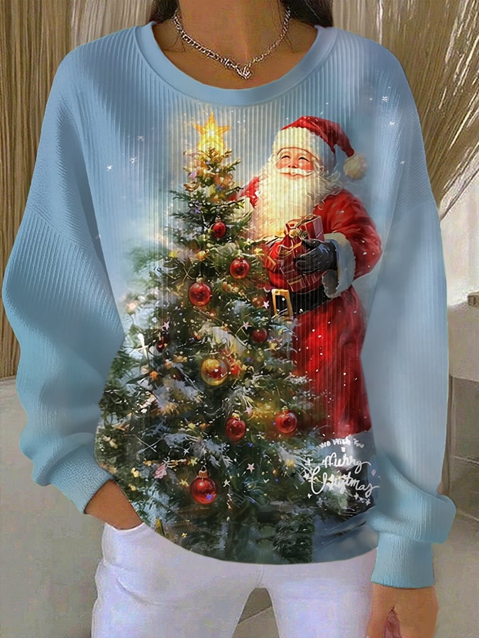 Women's Retro Christmas Santa Claus Print Round Neck Sweatshirt