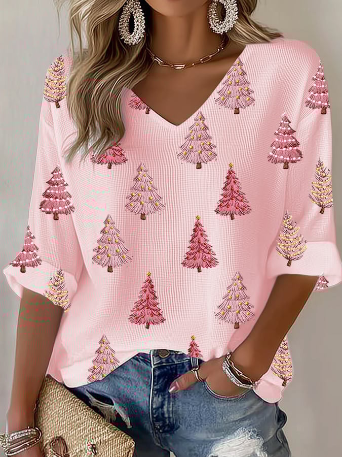 Women's Rugby Print Waffle Long Sleeve T-Shirt