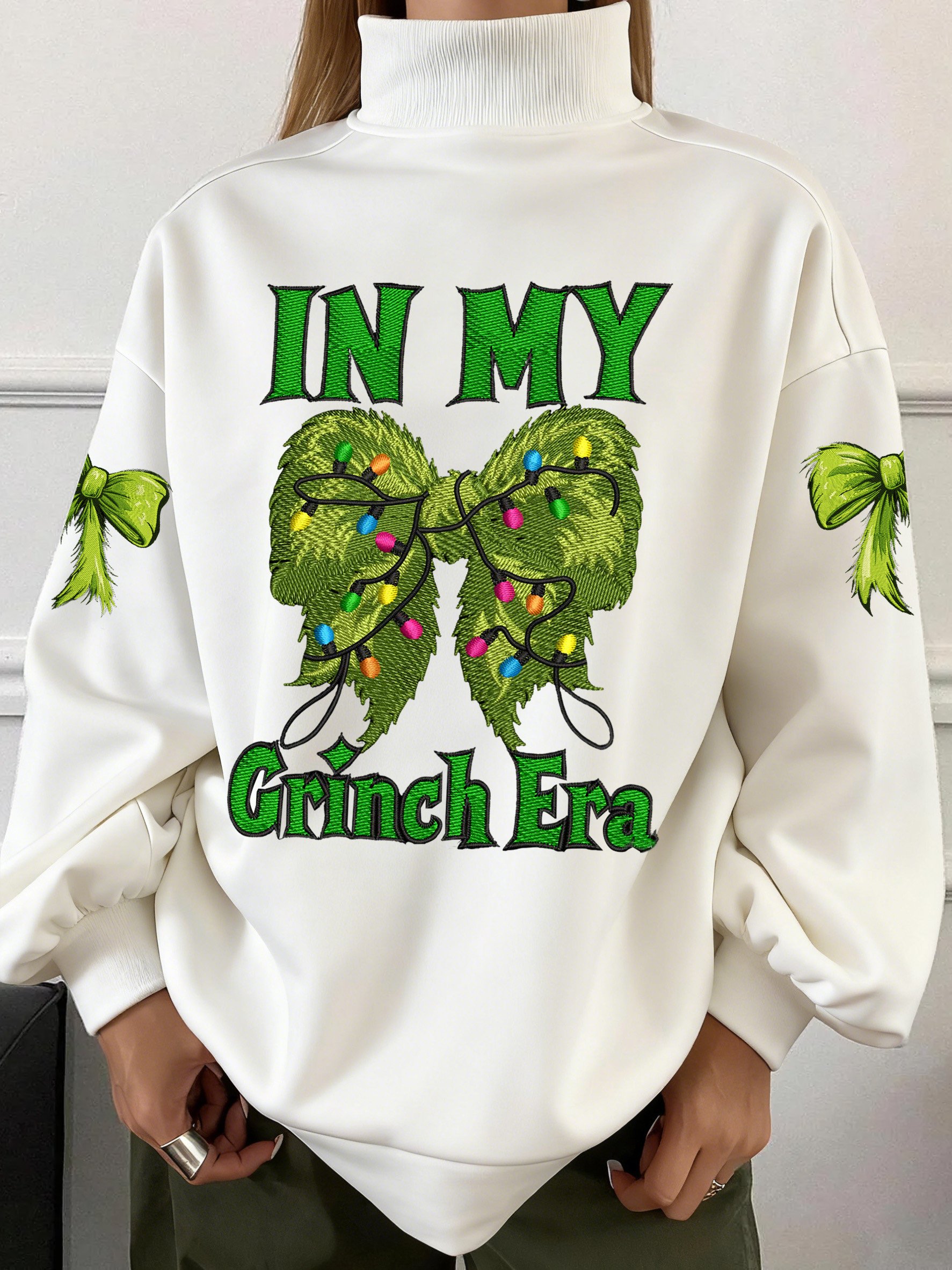 Women's Winter In My Green Time Bow Christmas Tree Print Festive Turtleneck Sweatshirt